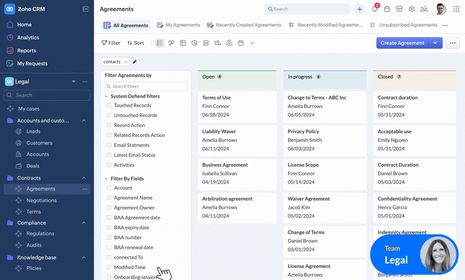 Угода укладена — чудово. Але далі йдуть адаптація, виставлення рахунків та передача справи сервісній команді. Zoho CRM запускає весь ланцюжок: створює завдання для відповідних відділів, надсилає клієнту вітальний лист та фіксує дату наступного контакту.
