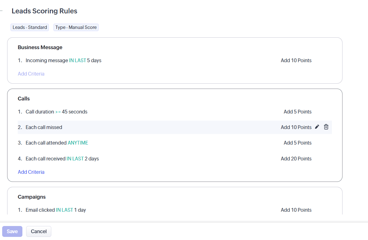 Zoho CRM оцінює кожного потенційного клієнта за визначеними вами критеріями: відкрив електронний лист — plus балів, відвідав ваш веб-сайт — plus , відповів на дзвінок — plus . Менеджери бачать, хто саме зараз є «гарячим» потенційним клієнтом, і зосереджують на цьому свою увагу, замість того щоб витрачати час на «холодні» контакти.